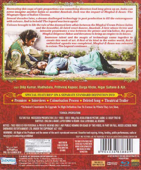 Set in the 16th century AD, the movie brings to life the tale of the doomed love affair between the Mughal Crown Prince Saleem and the beautiful, ill-fated court dancer, whose fervor and intensity perpetrates a war between the prince and his father the great Mughal Emperor Akbar, and threatens to bring an empire to its knees.